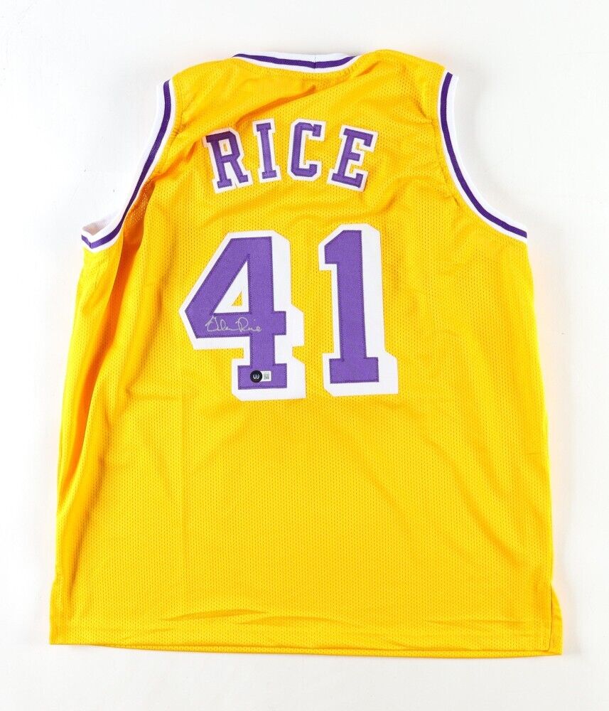 Custom on-court style jersey. Everything is sewn on, size XL. Hand-signed by Glen Rice.The lot / autograph(s) includes an official Beckett Authentication Services serially-numbered hologram for authenticity purposes. The signing of this item was witnessed by Beckett.Authentication: Beckett Hologram