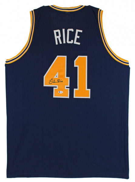 Custom on-court style jersey. Everything is sewn on, size XL. Hand-signed by Glen Rice.The lot / autograph(s) includes an official Beckett Authentication Services serially-numbered hologram and matching COA for authenticity purposes. The signing of this item was witnessed by Beckett.Authentication: Beckett COA