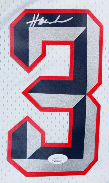 Hakeem Olajuwon Autographed Rockets White Mitchell&Ness Hardwood Classic Swingman Jersey- JSA W This is a Hand Autographed Jersey of Hakeem Olajuwon of the Houston Rockets. This is a Mitchell & Ness Hardwood Classic Swingman Jersey. This item has a James Spence Witness Protection Authentication, which Comes with a numbered Sticker and Matching JSA COA. You can view this item on the SpenceLOA website, it shows when and where it was signed. It was signed either at a public autograph appearance or a Private Signing. This is a stock photo of the item. Although you may not receive this exact item, the item you receive is virtually identical and brand new in great shape.