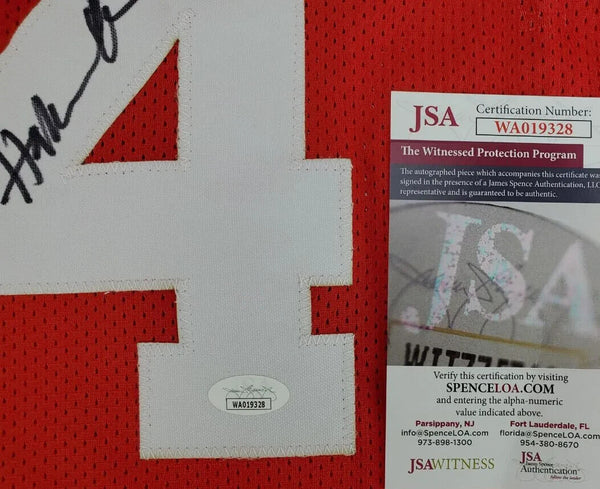 Custom on-court style jersey. Everything is sewn on, size XL. Hand-signed by Hakeem Olajuwon (HOF).The lot / autograph(s) includes an official James Spence Authentication (JSA) hologram and matching COA for authenticity purposes. The signing of this item was witnessed by JSA.Authentication: JSA COA