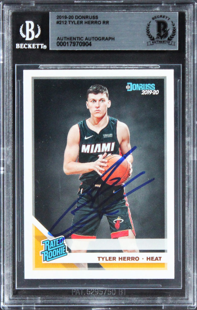This Autographed 2019 Donruss #212 Rookie Card has been Personally Signed by Tyler Herro of the Miami Heat . This item is 100% Authentic, it comes slabbed and authenticated by Beckett Authentication Services. The authenticity can be verified on Beckett Authentication Services website.