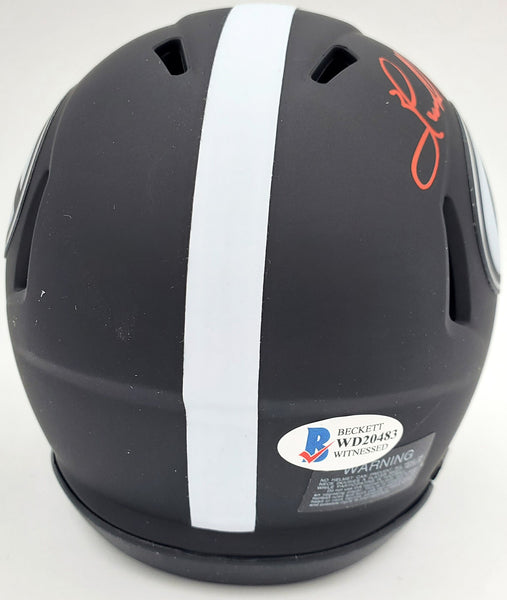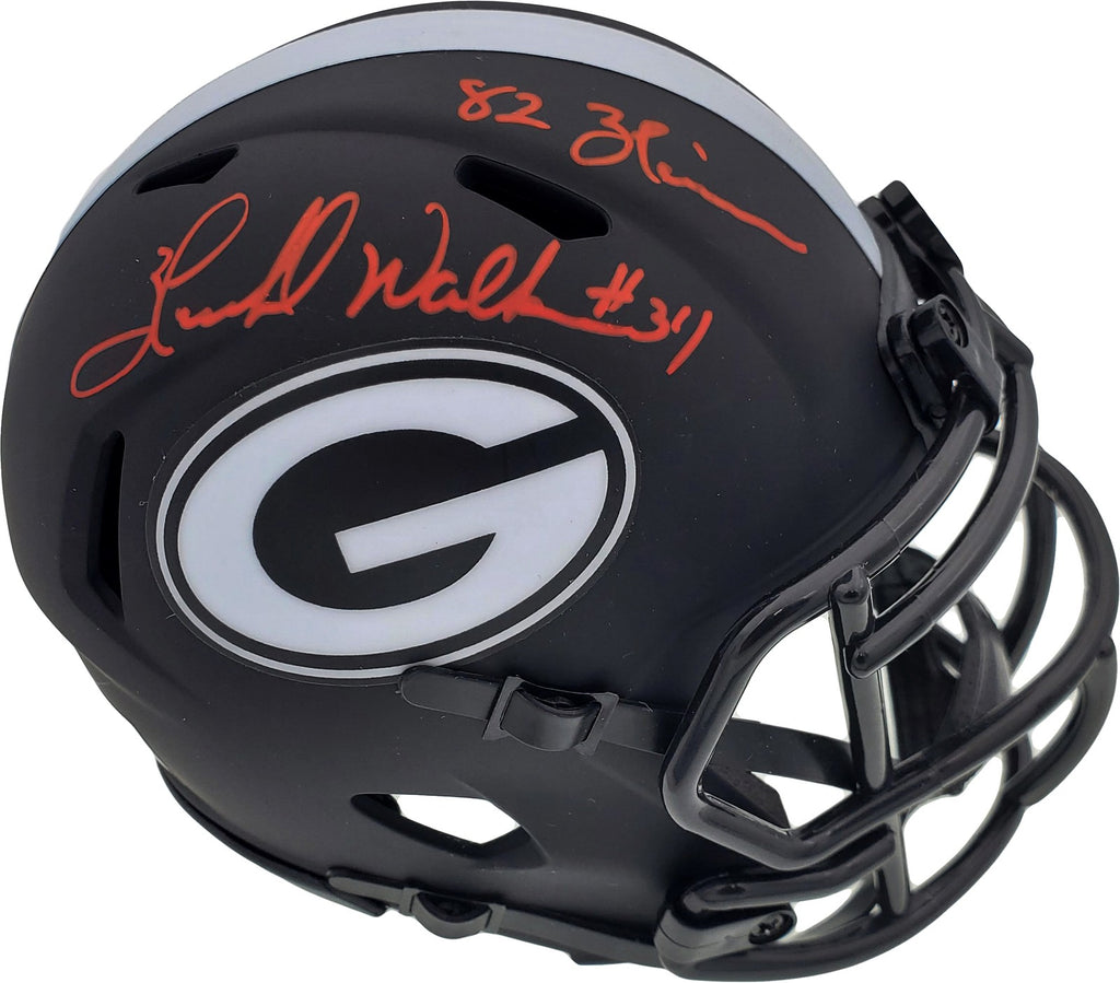 This is a Georgia Bulldogs Eclipse Black Speed Mini Helmet that has been hand signed by Herschel Walker. It has been certified authentic by Beckett Authentication (BAS) and comes with their sticker and matching certificate of authenticity. A,A A,A NOTE: The Eclipse Black helmets are very delicate and often have some marks or scratches on them.