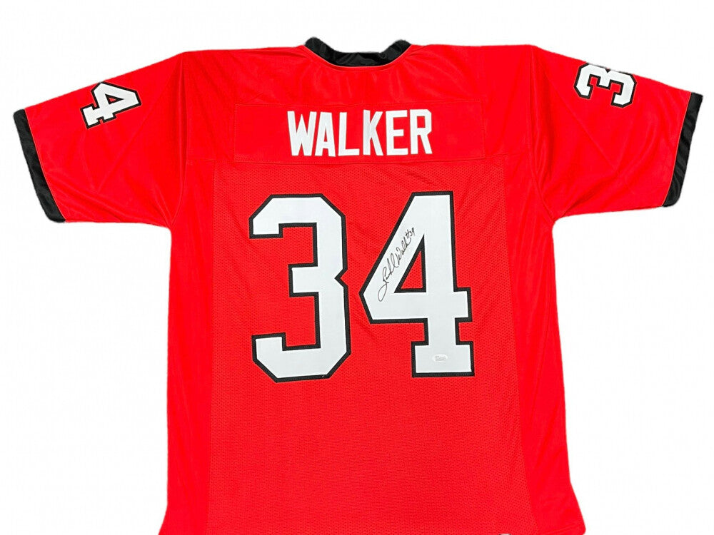 Custom on-field style jersey. Everything is sewn on, size XL. Hand-signed by Herschel Walker.The lot / autograph(s) includes an official James Spence Authentication (JSA) hologram and QR Code card for authenticity purposes. The signing of this item was witnessed by JSA.Authentication: JSA Hologram with QR Code card