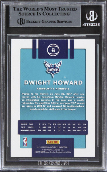 This Autographed 2017 Donruss #19 Card has been Personally Signed by Dwight Howard of the Charlotte Hornets. This item is 100% Authentic, it comes slabbed and authenticated by Beckett Authentication Services. The authenticity can be verified on Beckett Authentication Services website.