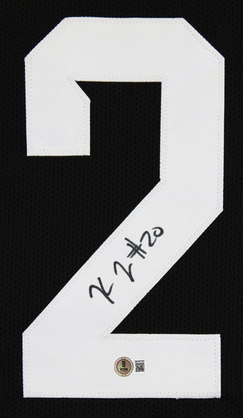This Autographed Black Pro Style Jersey has been Personally Signed by Kaleb Johnson of the Iowa Hawkeyes. This item is 100% Authentic to include a hologram by Beckett Authentication Services. This item will come with an affixed Beckett Authentication Services (BAS) authentication sticker, which includes a scannable QR code to verify authenticity. Please note that Beckett no longer provides serial-numbered COA cards, and the attached BAS sticker will serve as the complete authentication for this item. This is a BAS Witnessed Protection Program item which means a Beckett Authentication Service representative was present when this item was being signed. We conducted an autograph signing with Kaleb Johnson where multiples of the same item were signed. While the photographs are representative of this item, the size, placement and strength of the signature may vary. Each item is hand signed, therefore, each autograph is unique. This item can be verified through BAS Witnessed. This is a X-Large sized, non-branded, custom-stitched Jersey.