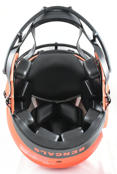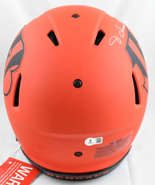 This is a Ja'Marr Chase of the Cincinnati Bengals Autographed Riddell football full size Rave Speed Authentic helmet. This item has a Beckett Witnessed Authentication, which comes with a numbered hologram and a QR code for verification. You can view this item on the Beckett Authentication website and it shows when and where the item was signed. It was signed either at a public autograph appearance or a private signing. This is a stock photo of the item. Although you may not receive this exact item, the item you receive is virtually identical, brand new, and in great shape. *Autograph location may vary* This is a Ja'Marr Chase of the Cincinnati Bengals Autographed Riddell football full size Rave Speed Authentic helmet. This item has a Beckett Witnessed Authentication, which comes with a numbered hologram and a QR code for verification. You can view this item on the Beckett Authentication website and it shows when and where the item was signed. It was signed either at a public autograph appearance or a private signing. This is a stock photo of the item. Although you may not receive this exact item, the item you receive is virtually identical, brand new, and in great shape. *Autograph location may vary*