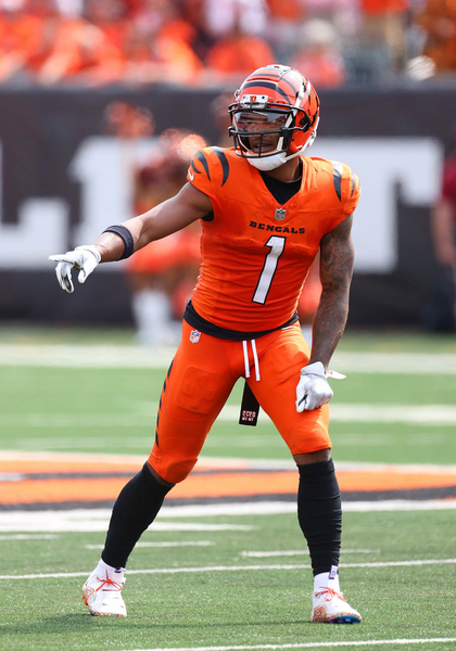 Custom on-field style jersey with everything sewn on, size XL, has been personally hand-signed by Ja'Marr Chase of the Cincinnati Bengals. This autograph is certified by PSA/DNA (Professional Sports Authenticators). It comes with the numbered authentication hologram with scannable QR Code card which can be verified on the PSA website, psacard.com.