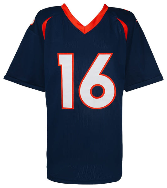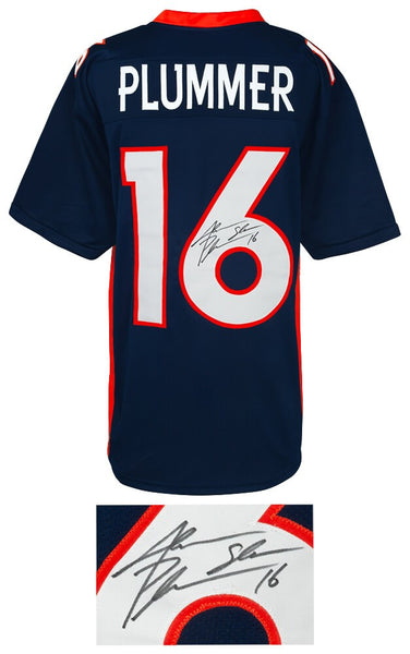Jake Plummer signed navy custom football jersey with 'Snake' inscription. Jersey is size X-Large. Item comes with a Schwartz Sports Memorabilia tamper-proof numbered hologram and Certificate of Authenticity which can be verified online.