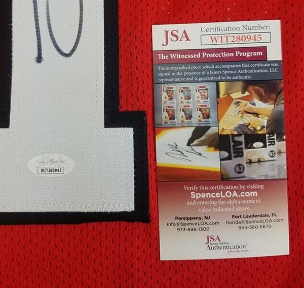 Custom on-field style jersey. Everything is sewn on, size XL. Has been hand-signed by Jakeem Grant Sr.The lot / autograph(s) includes an official James Spence Authentication (JSA) hologram and matching COA for authenticity purposes. The signing of this item was witnessed by JSA.Authentication: JSA COA