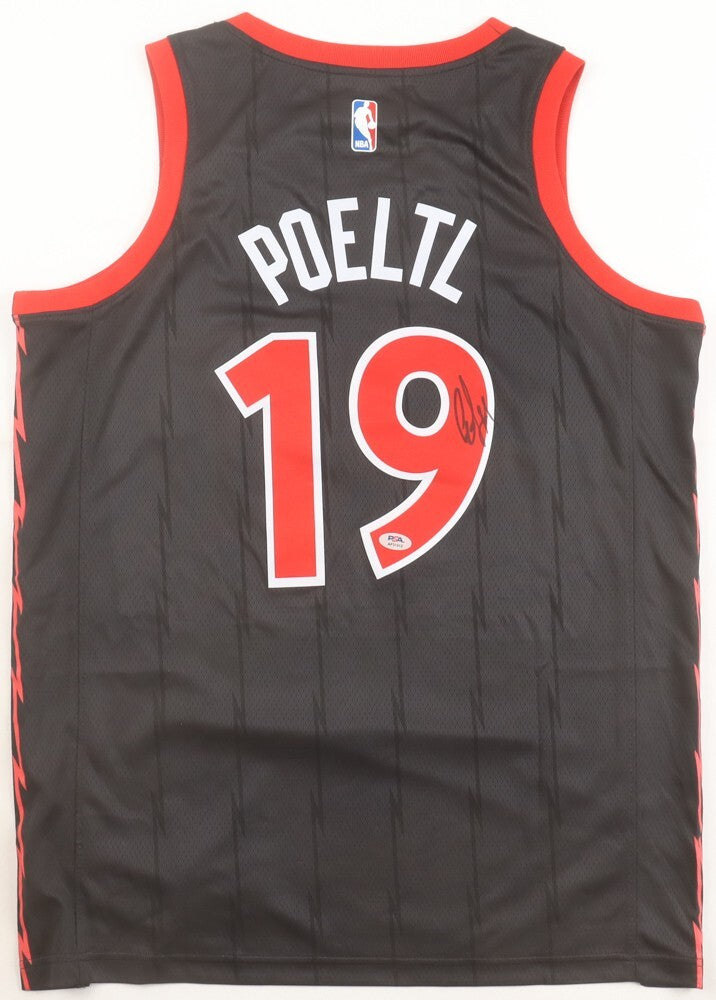Authentic Jordan jersey with everything pressed on, size 48. Hand-signed by Jakob Poeltl (Toronto Raptors).The autograph(s) includes an official PSA/DNA hologram with QR Code card for authenticity purposes.Authentication: PSA Hologram with QR Code card