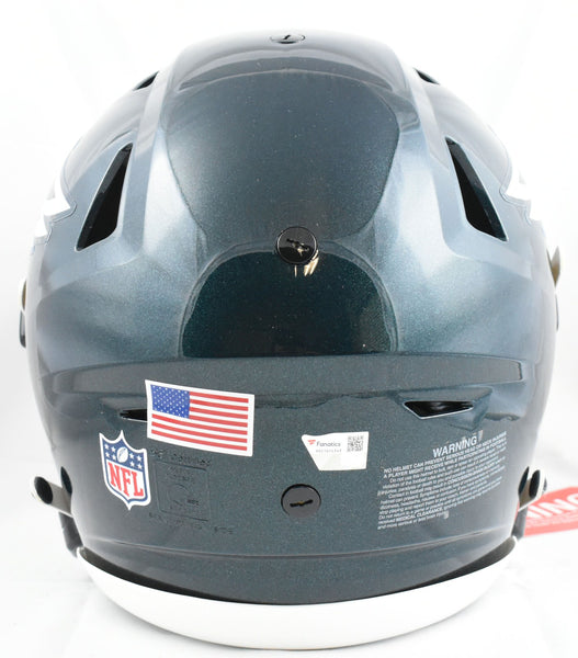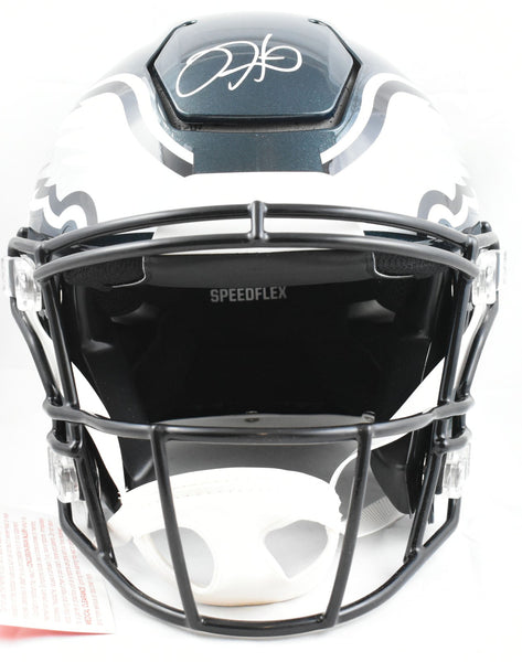 This is a Jalen Hurts of the Philadelphia Eagles Autographed Riddell football full size Speed Flex Authentic helmet. This item has a Fanatics Authentication, which comes with a numbered hologram and a QR code for verification. You can view this item on the Fanatics Authentication website and it shows when and where the item was signed. It was signed either at a public autograph appearance or a private signing. This is a stock photo of the item. Although you may not receive this exact item, the item you receive is virtually identical, brand new, and in great shape. *Autograph location may vary* This is a Jalen Hurts of the Philadelphia Eagles Autographed Riddell football full size Speed Flex Authentic helmet. This item has a Fanatics Authentication, which comes with a numbered hologram and a QR code for verification. You can view this item on the Fanatics Authentication website and it shows when and where the item was signed. It was signed either at a public autograph appearance or a private signing. This is a stock photo of the item. Although you may not receive this exact item, the item you receive is virtually identical, brand new, and in great shape. *Autograph location may vary*