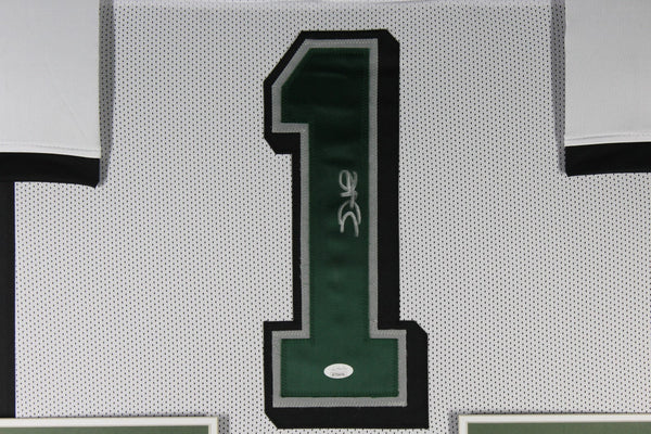 JALEN HURTS AUTOGRAPHED & PROFESSIONALLY FRAMED PRO-STYLE JERSEY(Occasionally our own stock pictures are used at times due to quantity of framing, all frames will look identical as the one pictured)THE FRAMED JERSEY MEASURES 35"x 44" & COMES WITH THE FOLLOWING:-UV Protected Acrylic-Triple Acid Free Team Colored Matting-2 High Quality 8"x10" Photos-Team LogoEvery framed autographed jersey is accompanied with a tamper-proof hologram on the signed part of the jersey from one of the main authenticators in the industry (JSA, Beckett, PSA, etc.) and can be verified on their corresponding websites to prove authenticity.