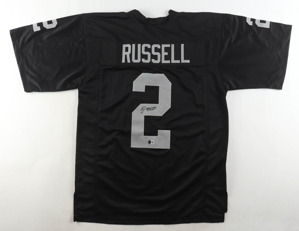 Custom on-field style jersey. Everything sewn on, size adult XL. Hand-signed by Jamarcus Russell.The autograph includes an official Beckett Authentication Services serially numbered scannable hologram and QR Code Card for authenticity purposes. The signing of this item was witnessed by Beckett.Authentication: Beckett Scannable Hologram & QR Code CardCustom on-field style jerseys are a more affordable option for autograph seekers. These jerseys do not have any brand name or tags and are made in the Philippines. They feature stitched on names and numbers and are made to look very similar to the on-field jerseys that the players wear. These custom jerseys are very commonly used in the memorabilia industry.