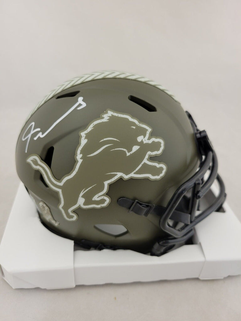 JAMESON WILLIAMS AUTOGRAPHED / SIGNED DETROIT LIONS SALUTE TO SERVICE (STS) SPEED MINI HELMET WITH BECKETT WITNESSED QR CODE HOLOGRAM COA