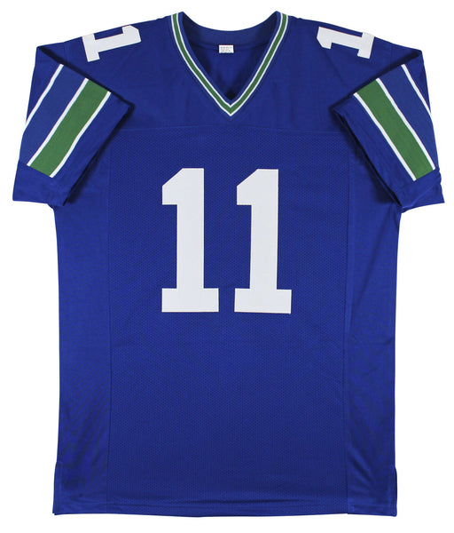 This Autographed Blue Throwback Pro Style Jersey has been Personally Signed by Jaxon Smith-Njigba of the Seattle Seahawks. This item is 100% Authentic to include a hologram by Beckett Authentication Services. This item will come with an affixed Beckett Authentication Services (BAS) authentication sticker, which includes a scannable QR code to verify authenticity. Please note that Beckett no longer provides serial-numbered COA cards, and the attached BAS sticker will serve as the complete authentication for this item. We have multiples of this same item. While the photographs are representative of this item, the size, placement and strength of the signature may vary. Each item is hand signed, therefore, each autograph is unique. This is a X-Large sized, non-branded, custom-stitched Jersey.