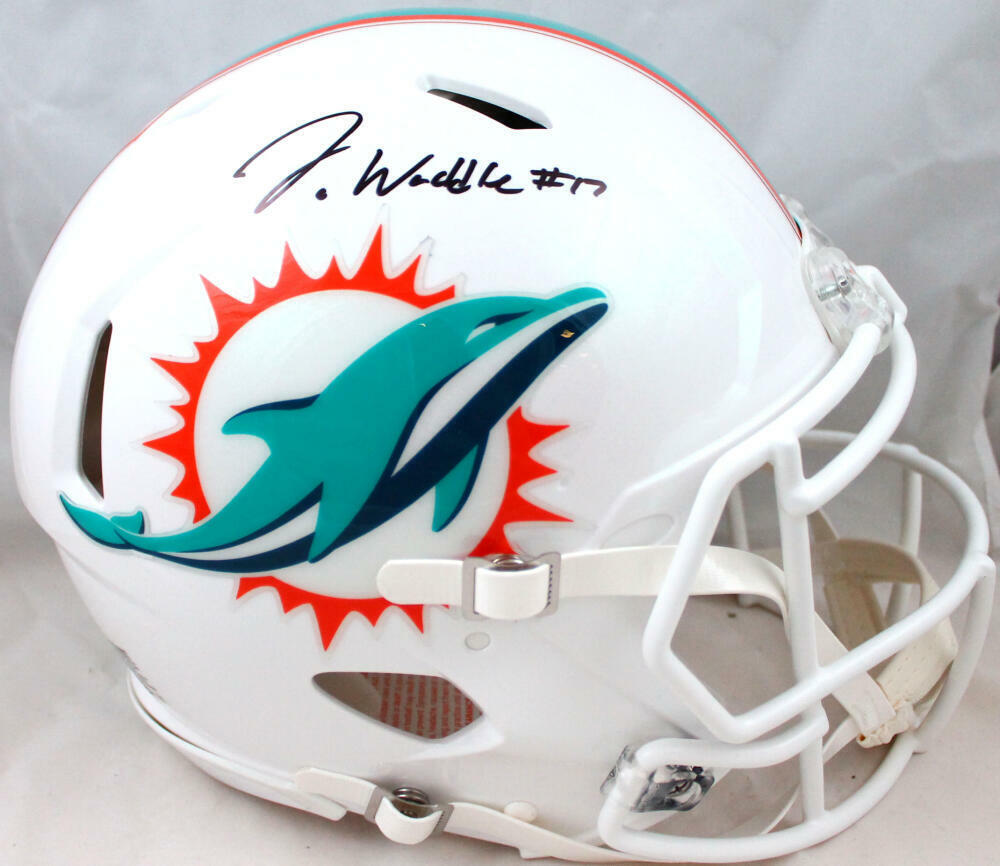 Jaylen Waddle Autographed Miami Dolphins F/S Speed Authentic Helmet-Fanatics*Black This is a hand autograph of Jaylen Waddle of the Miami Dolphins on a Riddell Football Full Size Speed Authentic Helmet. This item has a Fanatics Authentication, which comes with a numbered sticker hologram and a QR code for verification. You can view this item on the Fanatics Authentication website and it shows when and where the item was signed. It was signed either at a public autograph appearance or a private signing. This is a stock photo of the item. Although you may not receive this exact item, the item you receive is virtually identical and brand new in great shape.