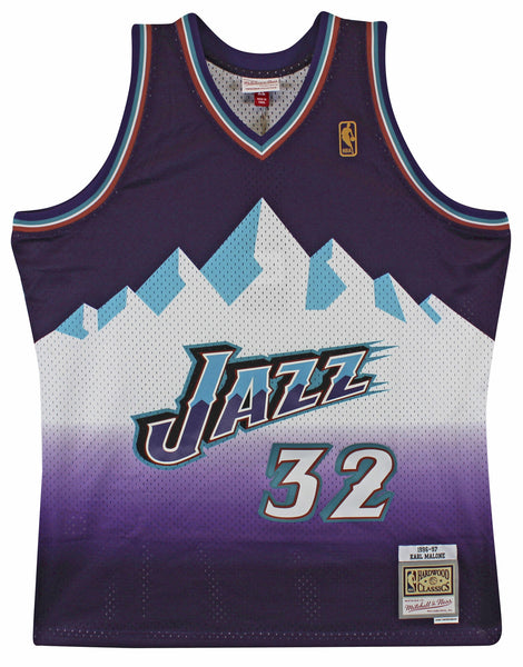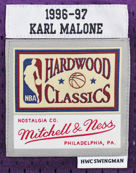 Jazz Karl Malone Signed 1996-97 Purple Mitchell & Ness Swingman Jersey BAS Wit