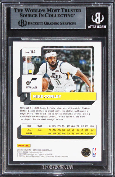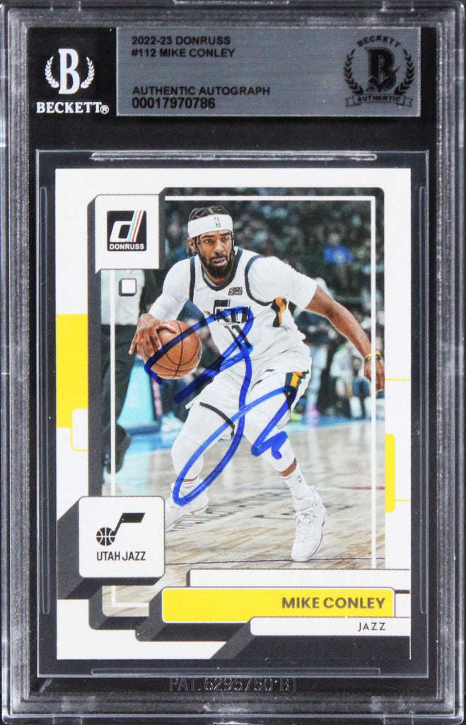 This Autographed 2022 Donruss #112 Card has been Personally Signed by Mike Conley of the Utah Jazz. This item is 100% Authentic, it comes slabbed and authenticated by Beckett Authentication Services. The authenticity can be verified on Beckett Authentication Services website.