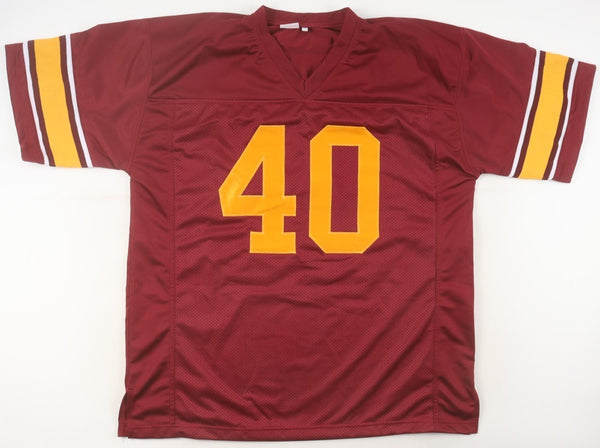 Custom on-field style jersey with everything sewn on, size XL. Hand-signed and inscribed by Jeff Fisher (USC Trojans).The autograph includes an official Beckett Authentication Services serially-numbered hologram and matching COA for authenticity purposes. The signing of this item was witnessed by Beckett.Authentication: Beckett COA