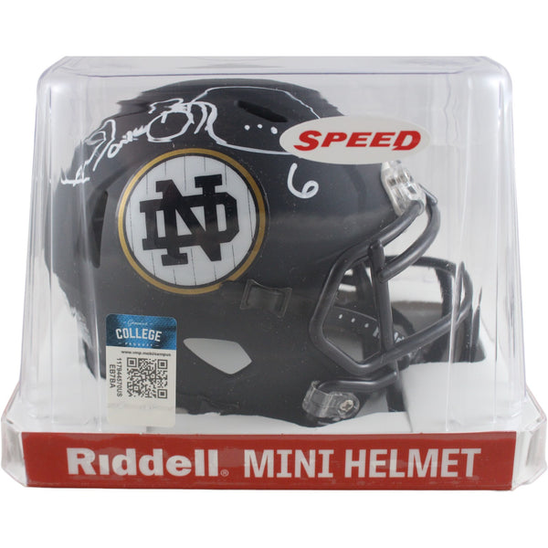 The number in the listing title is just an inventory sku for our records and is not the authentication number. The item pictured is a stock photo unless otherwise noted. This is a Notre Dame Fighting Irish Shamrock Yankees Series Mini Helmet that was personally autographed by Jerome Bettis. Includes a certificate of authenticity from Beckett Authentication Services (BAS) and Denver Autographs. FREE SHIPPING within the USA on orders over $10!