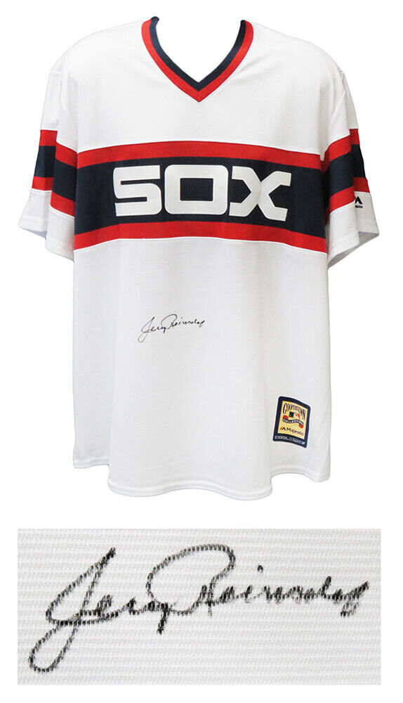 Jerry Reinsdorf signed Chicago White Sox 1980's style throwback Majestic Cooperstown Collection white baseball jersey. Item comes with a Schwartz Sports Memorabilia tamper-proof numbered hologram and Certificate of Authenticity which can be verified online.