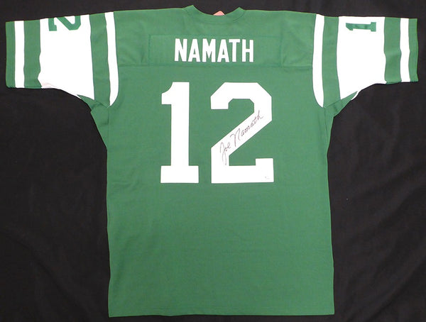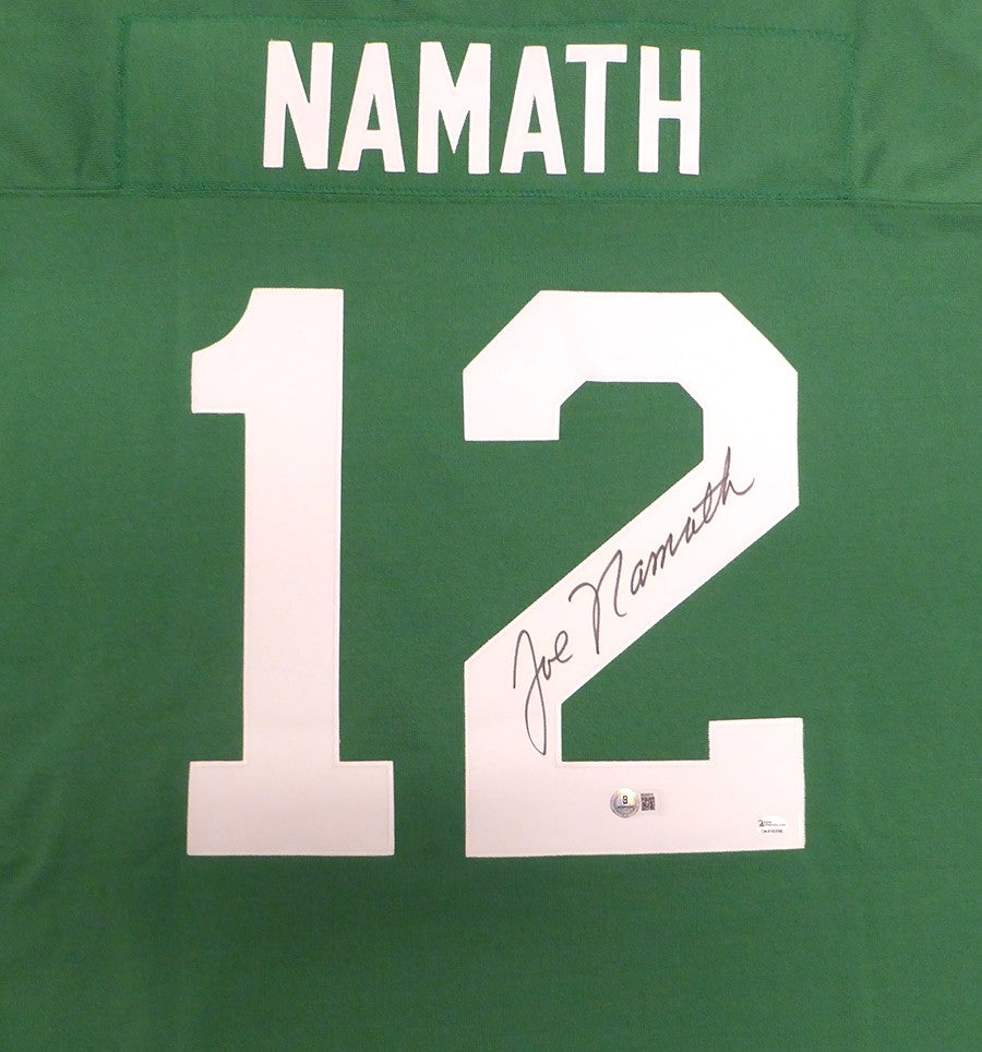 This is a Green Authentic Mitchell & Ness New York Jets Jersey that has been hand signed by Joe Namath. This item has been certified authentic by Beckett Authentication (BAS) and comes with their tamper-proof QR Code hologram.