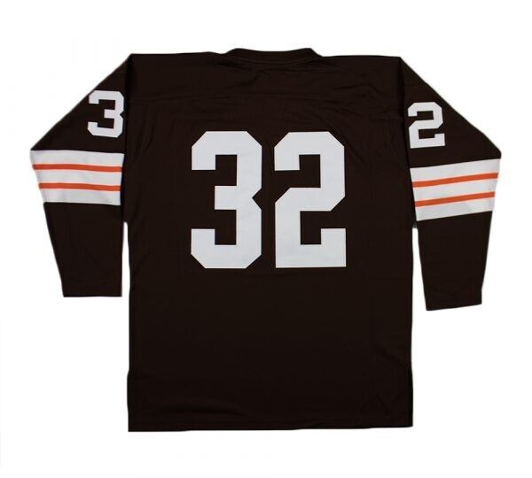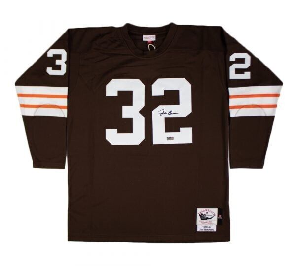 A Cleveland Browns Mitchell & Ness Authentic Brown Long Sleeve NFL Jersey hand signed by Jim Brown. The item and signature are in excellent condition. Jim is an 8x Pro Bowler, 4x NFL MVP and an NFL Champion. AUTHENTICATION: The item is accompanied by a Certificate of Authenticity - Serial Numbered and Databased Hologram - Picture of Jim from the signing