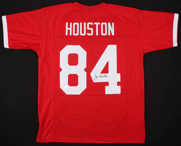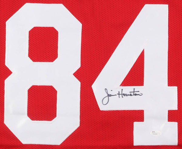 Custom on-field style jersey. Everything is sewn on, size XL. Hand-signed in black felt-tip pen by Jim Houston. (D.2018) The lot / autograph(s) includes an official James Spence Authentication (JSA) hologram and matching COA for authenticity purposes.Authentication: JSA COA
