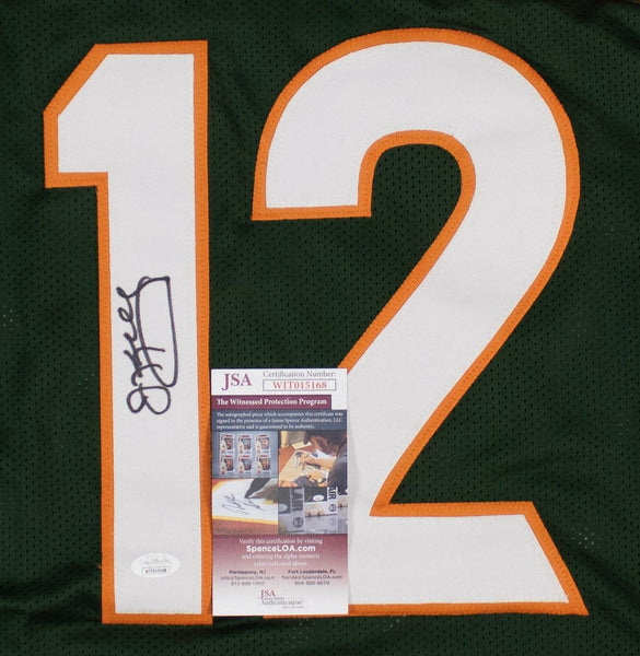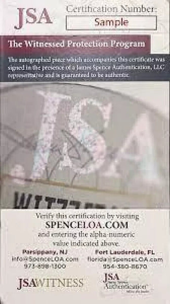Custom on-field style jersey. Everything is sewn on, size XL. Hand signed in black felt-tip pen by Jim Kelly. The lot / autograph(s) includes an official James Spence Authentication (JSA) hologram and matching COA for authenticity purposes. The signing of this item was witnessed by JSA.Authentication: JSA COA