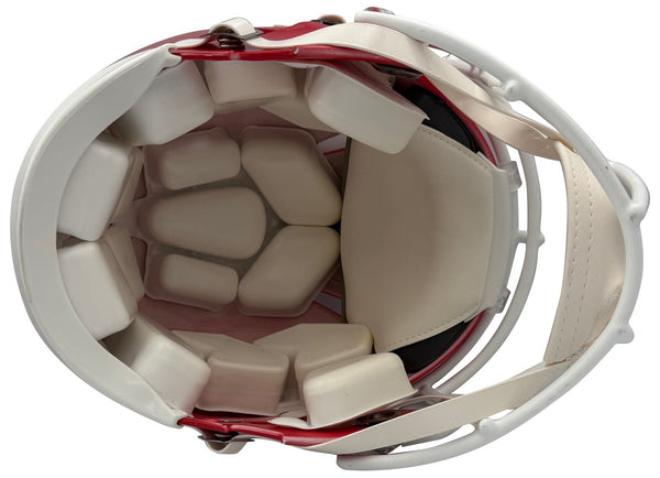 This full size authentic football helmet has been hand signed by Joe Montana during his time with the Kansas City Chiefs. Widely regarded as one of the greatest quarterbacks in NFL history, Montana brought his championship pedigree to Kansas City after a legendary career in San Francisco. The helmet comes with an official Fanatics Authentic Certificate of Authenticity verifying the signature. With its authentic design and bold autograph, this helmet stands out as a premier collectible for Chiefs and NFL fans.