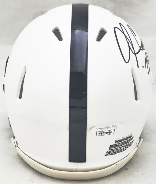 This is a Penn State Nittany Lions White Speed Mini Helmet that has been hand signed by John Cappelletti. This item was inscribed "73 Heisman." This item has been certified authentic by JSA and comes with their tamper-proof sticker and matching certificate of authenticity.