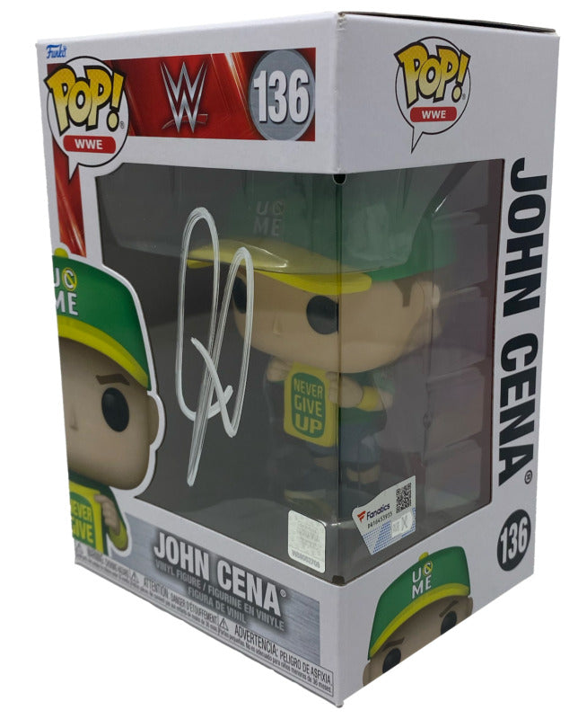 John Cena Autographed WWE #136 Never Give Up Funko Pop! Figurine Fanatics Personally Autographed by John Cena Fanatics Authenticated Includes tamper-evident hologram to ensure authenticity Officially licensed This product is guaranteed authentic and includes a tamper-evident Fanatics Hologram.