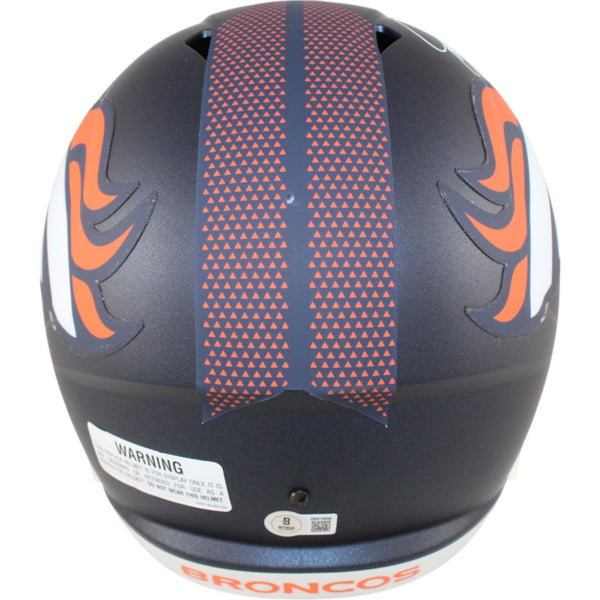 The number in the listing title is just an inventory sku for our records and is not the authentication number. The item pictured is a stock photo unless otherwise noted. This is a Denver Broncos Full Size 2024 Replica Helmet that was personally autographed by John Elway. Includes a certificate of authenticity from Beckett Authentication Services (BAS) and Denver Autographs.