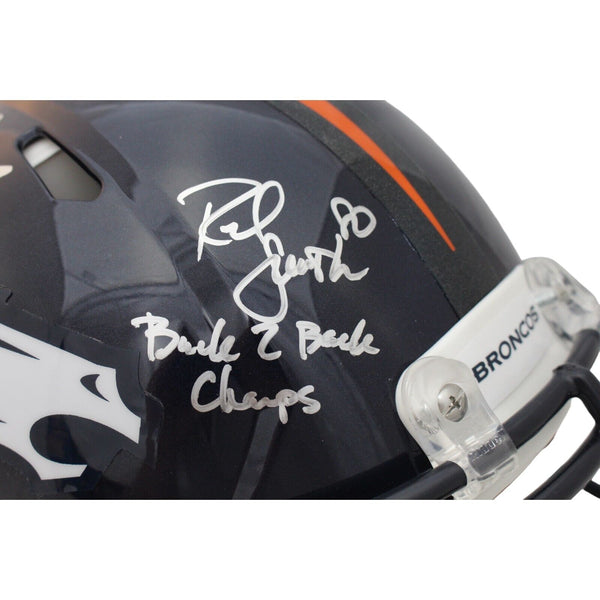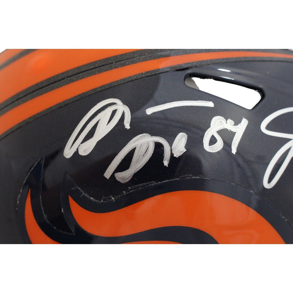 The number in the listing title is just an inventory sku for our records and is not the authentication number. The item pictured is a stock photo unless otherwise noted. This is a Denver Broncos Authentic Full Size Helmet that was personally autographed by John Elway, Shannon Sharpe, Ed McCaffrey, and Rod Smith. Includes a certificate of authenticity from Beckett Authentication Services (BAS) and Denver Autographs.FREE SHIPPING within the USA on orders over $10!