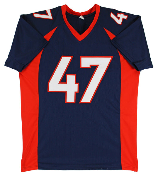 This Autographed Navy Blue Pro Style Jersey has been Personally Signed by John Lynch of the Denver Broncos. This item is 100% Authentic to include a hologram by Beckett Authentication Services. This item will come with the new Beckett Authentication hologram that has a scannable QR code rather than the traditional COA. If you would like to have a COA, you are welcome to reach out to Beckett for a printed certification once you receive your item. This is a BAS Witnessed Protection Program item which means a Beckett Authentication Service representative was present when this item was being signed. This is a stock item. We conducted an autograph signing with John Lynch and we have several of these available. The one you will receive will be of equal quality to the one pictured. This item can be verified through BAS Witnessed. This is a X-Large sized, non-branded, custom-stitched Jersey.