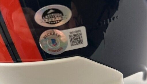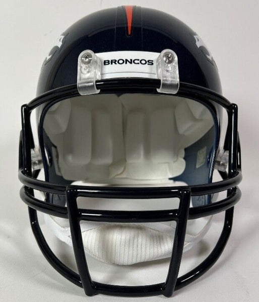 The product is an autographed/inscribed John Lynch "HOF '21" Denver Broncos full-size replica helmet, with the autograph authenticated by Beckett Authentication Services (BAS). This unique item features the signature of the former Denver Broncos safety, who is a member of the Pro Football Hall of Fame class of 2021. The helmet is a must-have for fans of the Denver Broncos and football enthusiasts, making it a valuable and collectible piece for any sports memorabilia collector.