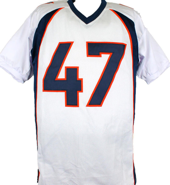 John Lynch Autographed White Pro Style Jersey- Beckett W Hologram *Silver THIS IS NOT AN NFL JERSEY. THIS HAS NO TAGS, NO LOGOS, NO EMBLEMS. This is a John Lynch of the Denver Broncos hand autographed custom made (Non Name Brand) authentic style (Stitched Letters and Numbers) jersey. This item has a Beckett Witnessed Authentication, which comes with a numbered hologram and a QR code for verification. You can view this item on the Beckett Authentication website and it shows when and where the item was signed. It was signed either at a public autograph appearance or a private signing. This is a stock photo of the item. Although you may not receive this exact item, the item you receive is virtually identical, brand new, and in great shape.