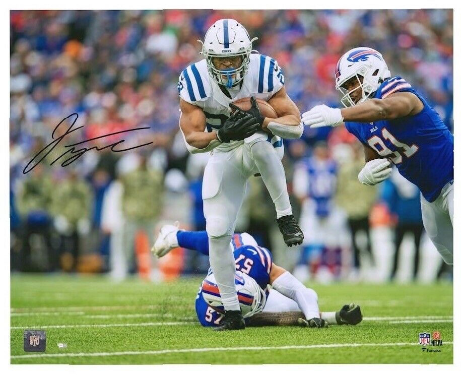 This 16" x 20" photograph has been personally hand-signed by jonathan taylor. it is officially licensed by the national football league and comes with an individually numbered, tamper-evident hologram from fanatics authentic. to ensure authenticity, the hologram can be reviewed online. this process helps to ensure that the product purchased is authentic and eliminates any possibility of duplication or fraud. money back guarantee! if for any reason you are not completely satisfied with the quality or authenticity of your purchase, we will gladly give you a full refund or exchange, whichever you prefer up to 30 days after purchase. please feel free to e-mail us with any questions. good luck bidding!!! authenticator pre-certified authenticator: fanatics authenticated history of item: jonathan taylor has signed this item in the presence of a representative from fanatics authenticated. describe how you came to possess this item: super sports center is a fully authorized dealer for upper deck authenticated as well as mounted memories and steiner sports. other information about you and / or the item: super sports center strives to deliver the most authentic in sports memorabilia from trusted companies like mounted memories, steiner sports and upper deck authenticated. if it exists, we can find it for you!