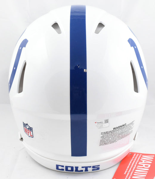 This is a Jonathan Taylor of the Indianapolis Colts Autographed Riddell football full size Speed Authentic helmet. This item has a Fanatics Authentication, which comes with a numbered sticker hologram and a QR code for verification. You can view this item on the Fanatics Authentication website and it shows when and where the item was signed. It was signed either at a public autograph appearance or a private signing. This is a stock photo of the item. Although you may not receive this exact item, the item you receive is virtually identical, brand new, and in great shape. *Autograph location may vary* This is a Jonathan Taylor of the Indianapolis Colts Autographed Riddell football full size Speed Authentic helmet. This item has a Fanatics Authentication, which comes with a numbered sticker hologram and a QR code for verification. You can view this item on the Fanatics Authentication website and it shows when and where the item was signed. It was signed either at a public autograph appearance or a private signing. This is a stock photo of the item. Although you may not receive this exact item, the item you receive is virtually identical, brand new, and in great shape. *Autograph location may vary*