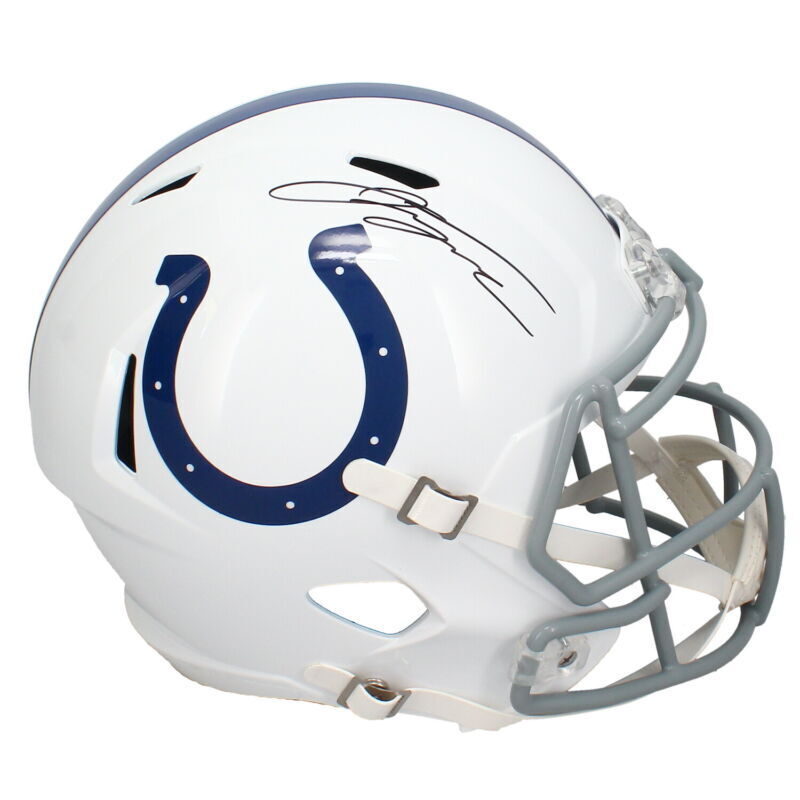 This full size replica speed helmet has been personally hand-signed by Jonathan Taylor. It is officially licensed by the National Football League and comes with an individually numbered, tamper-evident hologram from Fanatics Authentic. To ensure authenticity, the hologram can be reviewed online. This process helps to ensure that the product purchased is authentic and eliminates any possibility of duplication or fraud. MONEY BACK GUARANTEE! If for any reason you are not completely satisfied with the quality or authenticity of your purchase, we will gladly give you a full refund or exchange, whichever you prefer up to 30 days after purchase. Please feel free to e-mail us with any questions. GOOD LUCK BIDDING!!! Authenticator Pre-Certified Authenticator: Fanatics Authenticated History of item: Jonathan Taylor has signed this item in the presence of a representative from Fanatics Authenticated. Describe how you came to possess this item: Super Sports Center is a fully authorized dealer for Upper Deck Authenticated as well as Mounted Memories and Steiner Sports. Other information about you and / or the item: Super Sports Center strives to deliver the most authentic in sports memorabilia from trusted companies like Mounted Memories, Steiner Sports and Upper Deck Authenticated. If it exists, we can find it for you!