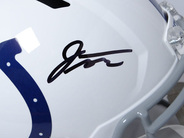 This is a Jonathan Taylor hand autographed full size speed replica helmet of the Indianapolis Colts. This item has a Fanatics Authentication, which comes with a numbered hologram and a generic Fanatics Certificate of Authenticity. You can view this item on the Fanatics Authentic website, it shows when and where the item was signed. It was signed either at a public autograph appearance or a private signing. This photo is the exact item that you will be receiving. Please see pictures for further details. This is a Jonathan Taylor hand autographed full size speed replica helmet of the Indianapolis Colts. This item has a Fanatics Authentication, which comes with a numbered hologram and a generic Fanatics Certificate of Authenticity. You can view this item on the Fanatics Authentic website, it shows when and where the item was signed. It was signed either at a public autograph appearance or a private signing. This photo is the exact item that you will be receiving. Please see pictures for further details.