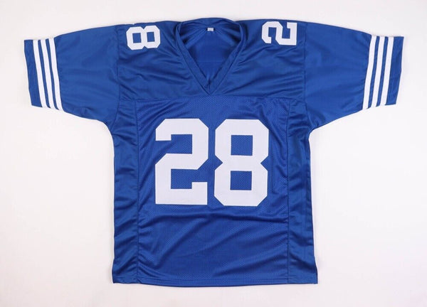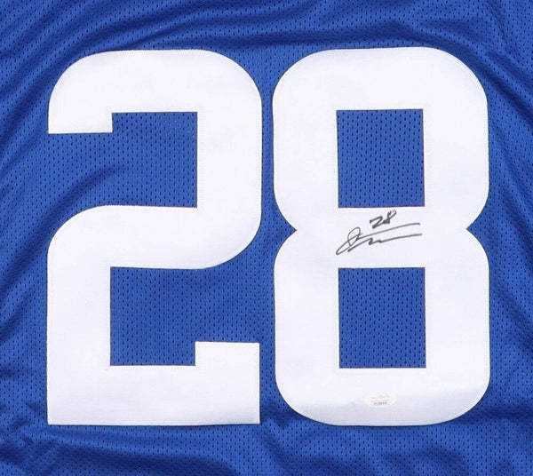 Custom on-field style jersey. Everything is sewn on, size XL. Hand-signed by Jonathan Taylor.The lot / autograph(s) includes an official Beckett Authentication Services serially-numbered hologram and QR code card for authenticity purposes.Authentication: Beckett Hologram with QR code card