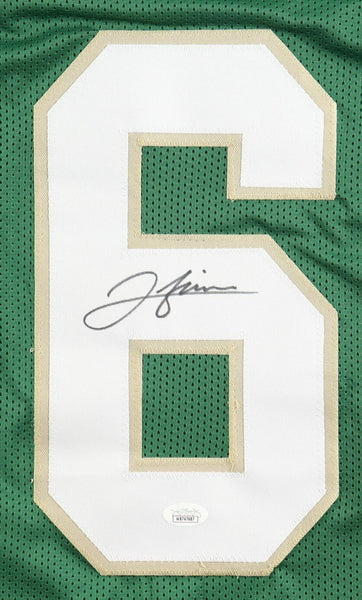 Custom on-field style jersey. Everything sewn on, size XL. Hand-signed by Jordan Faison.The autograph includes an official James Spence Authentication (JSA) hologram and QR Code card for authenticity purposes. The signing of this item was witnessed by JSA. Authentication: JSA Hologram with QR Code cardCustom on-field style jerseys are a more affordable option for autograph seekers. These jerseys do not have any brand name or tags and are made in the Philippines. They feature stitched on names and numbers and are made to look very similar to the on-field jerseys that the players wear. These custom jerseys are very commonly used in the memorabilia industry.