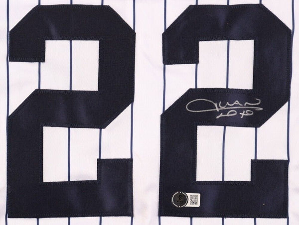 Custom on-field style jersey with everything sewn on, size XL. Hand-signed by Juan Soto.The autograph includes an official Beckett Authentication Services serially numbered hologram and QR Code card for authenticity purposes. The signing of this item was witnessed by Beckett.Authentication: Beckett QR Code card