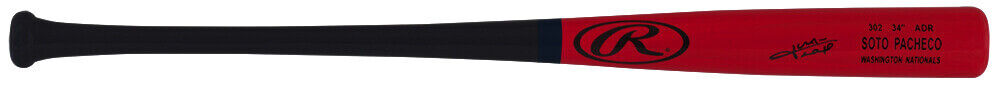 Juan Soto signed Rawlings red game model Washington Nationals baseball bat. Item comes with a Beckett Authentication tamper evident numbered sticker and matching Certificate of Authenticity which can be verified online.