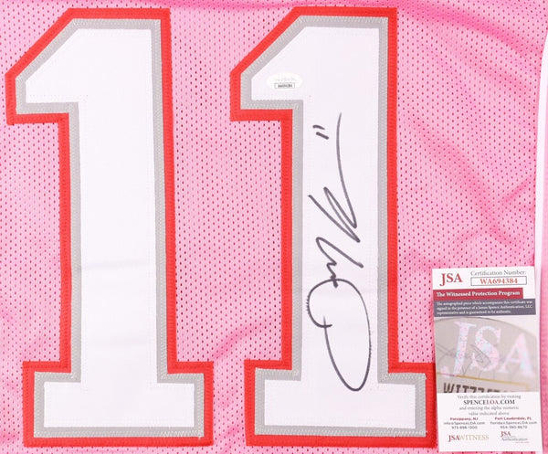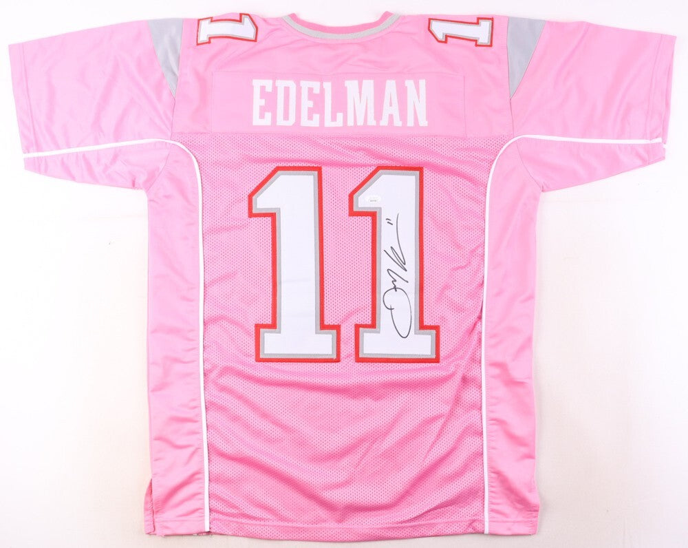 Custom on-field style Breast Cancer Awareness jersey. Everything sewn on, size XL. Hand-signed by Julian Edelman.The autograph(s) includes an official James Spence Authentication (JSA) hologram and matching COA for authenticity purposes. The signing of this item was witnessed by JSA.Authentication: JSA COA