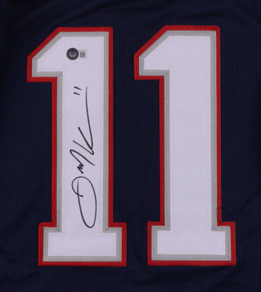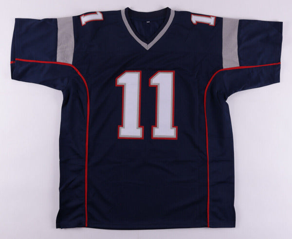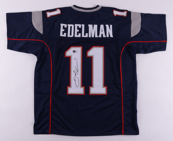Custom on-field style jersey. Everything is sewn on, size XL. Hand-signed in black Sharpie pen by Julian Edelman. The lot / autograph(s) includes an official Beckett Authentication Services serially numbered hologram and QR Code card for authenticity purposes. The signing of this item was witnessed by Beckett.Authentication: Beckett QR Code card