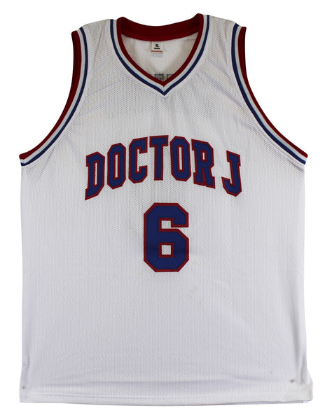 This Autographed White Pro Style Jersey has been Personally Signed by Julius "Dr. J" Erving of the Philadelphia 76ers. This item is 100% Authentic to include a hologram by Beckett Authentication Services. This item will come with an affixed Beckett Authentication Services (BAS) authentication sticker, which includes a scannable QR code to verify authenticity. Please note that Beckett no longer provides serial-numbered COA cards, and the attached BAS sticker will serve as the complete authentication for this item. We conducted an autograph signing with Julius "Dr. J" Erving where multiples of the same item were signed. While the photographs are representative of this item, the size, placement and strength of the signature may vary. Each item is hand signed, therefore, each autograph is unique. This item can be verified through BAS. This is a X-Large sized, non-branded, custom-stitched Jersey.