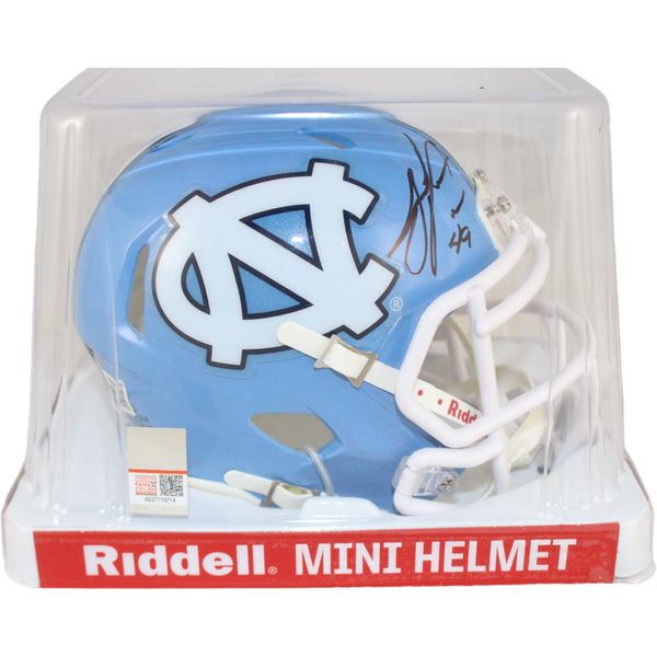 The number in the listing title is just an inventory sku for our records and is not the authentication number. The item pictured is a stock photo unless otherwise noted. This is a North Carolina Tar Heels Mini Helmet that was personally autographed by Julius Peppers. Includes a certificate of authenticity from Beckett Authentication Services (BAS) and Denver Autographs. FREE SHIPPING within the USA on orders over $10!