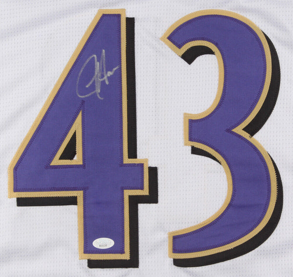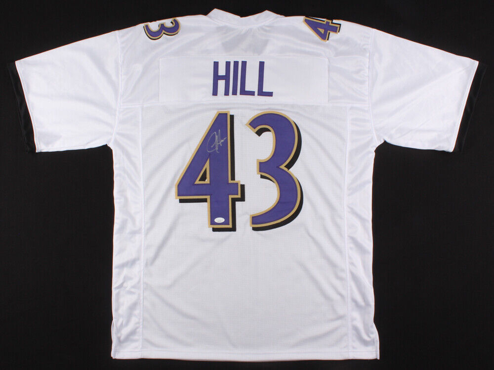 Custom on-field style jersey. Everything is sewn on, size XL. Hand-signed in silver felt tip pen by Justice Hill. The autograph(s) includes an official James Spence Authentication (JSA) "Signature Debut" hologram and COA. "Signature Debut" is the autographed memorabilia equivalent to a rookie card. The JSA definition of a "Signature Debut" is as follows: "Any item that is autographed and received by JSA prior to the last game of the signer's official rookie season.Authentication: JSA Signature Debut COA Check out all the items in our Friendly Confines Collectibles store, Thanks for looking.
